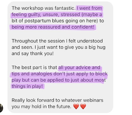 Bring your real-life questions and get clear guidance on how to support play and learning in your home - so you’re never left guessing or stuck.